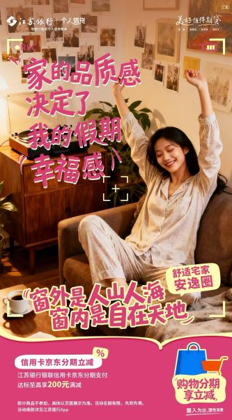 围绕民众节日期间旅行、亲子、潮玩、家居等多样化需求,江苏银行策划推出“玩转小长假”系列主题活动,以丰富权益矩阵激活消费潜力。在出行场景,消费者通过携程、去哪儿、飞猪等平台使用江苏银行信用卡支付,满1000元可享10-99元立减,办理旅游产品分期支付满300元还能额外立减15元;在家居消费场景,银联信用卡京东分期支付达标至高可享200元满减;针对潮玩爱好者,支付宝报名宝藏特权后,使用江苏银行信用卡支付可获双倍苏银豆积分,积分可兑换乐高积木等热门潮玩产品。