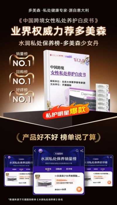 与此同时,多美森在全球市场的亮眼成绩:在意大利本土以超61%的市场占有率稳居药房品类榜首,产品足迹遍布50多个国家和地区,服务超千万女性;进入中国市场后,凭借扎实的产品力迅速获得专业人士与消费者认可,并稳居天猫国际私护类目榜前列。这些数据不仅印证了品牌的国际影响力,更让中国消费者对其产品实力充满信心。
