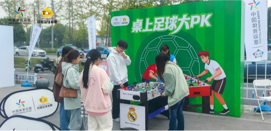 本次湘潭站的活动精心设置三大特色区域,为市民带来沉浸式体验。在体彩展示区,通过图文展板、宣传手册等形式,直观呈现公益体彩的公益用途与社会价值,同时详细解读传足游戏的基本规则、投注方式,帮助市民快速建立认知;传足体验区内,专业工作人员一对一为参与者答疑解惑,分享实用购买技巧,手把手指导操作流程,让新手朋友轻松入门;游戏区的九宫格射门、桌上足球大 PK 两大互动项目人气爆棚,市民们在欢声笑语中切磋技艺、感受运动乐趣,进一步加深了对传足游戏的理解。
