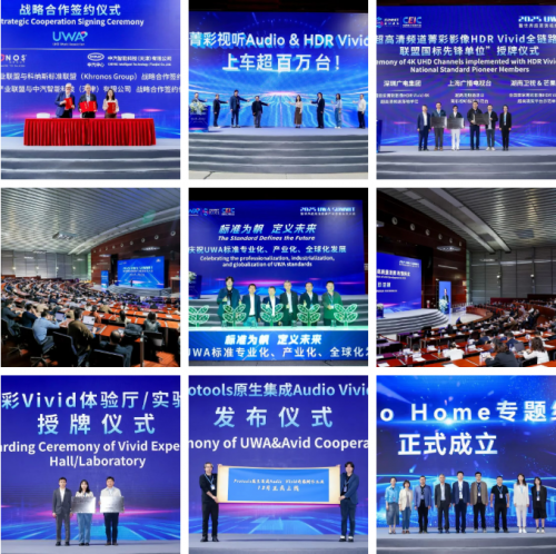产业合作与生态扩容成为大会亮点。现场举行多项签约与启动仪式:UWA联盟与科纳斯标准联盟(Khronos Group)签订战略合作意向书,加速3D图形、XR等技术的全球统一标准制定;与中汽智能科技(天津)有限公司携手,深耕汽车座舱沉浸式音视频技术产业化;正式成立AI to Home专题组,聚焦家庭康养、教育、体育直播等AI应用场景,构建端网云智协同新模式。同时,大会宣布了UWA联盟与Avid公司达成全方位深度技术合作的Pro Tools专业内容制作工具,原生集成Audio Vivid标准,将于12月正式上线,提升空间音频创作效率。