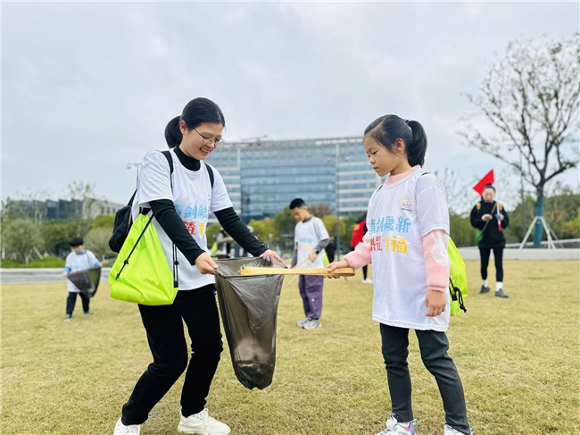 活动以“垃圾净化行动”拉开序幕,孩子们化身“环保小卫士”,在家长的陪同下,仔细搜寻步道旁、草坪里的纸屑、塑料瓶、零食包装袋等垃圾,不一会儿,不少家庭的垃圾袋就“战果满满”。