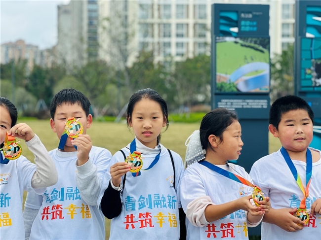活动最后,工作人员为每位小朋友带上了定制奖牌,孩子们举起奖牌,开心地和小伙伴分享。家长们也纷纷点赞:“活动既有趣又有意义,看着孩子主动参与环保、坚持走完徒步,真的很欣慰,期待社区和学校能继续开展这样有益身心,又亲近自然的活动。”
