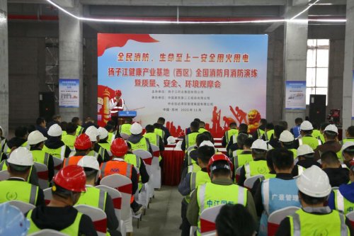 近日,由中建二局承建的苏州扬子江健康产业基地(西区)项目举办“全国消防月”消防演练暨质量、安全、环境观摩会。扬子江药业集团有限公司、苏州市吴江区消防大队、中建二局等各参建单位代表共计100余人参加。