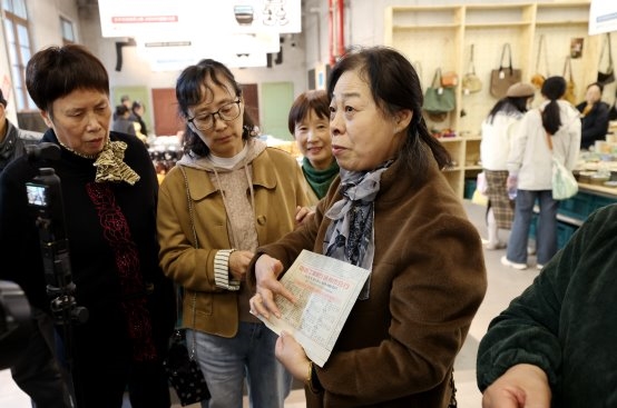 步入大厅,老同志们便纷纷拿出珍藏多年的老物件,现场瞬间变成了一个微型的“行史展览馆”。这时,陆桂华仔细环顾四周,快步走向靠扶梯的一处位置,声音里满是激动:“就是这儿!我现在站的地方,就是我当年的工位!”她的话音刚落,几位老同事立刻围拢过来,兴奋地指认起各自的位置,欢声笑语瞬间充满了整个大厅。