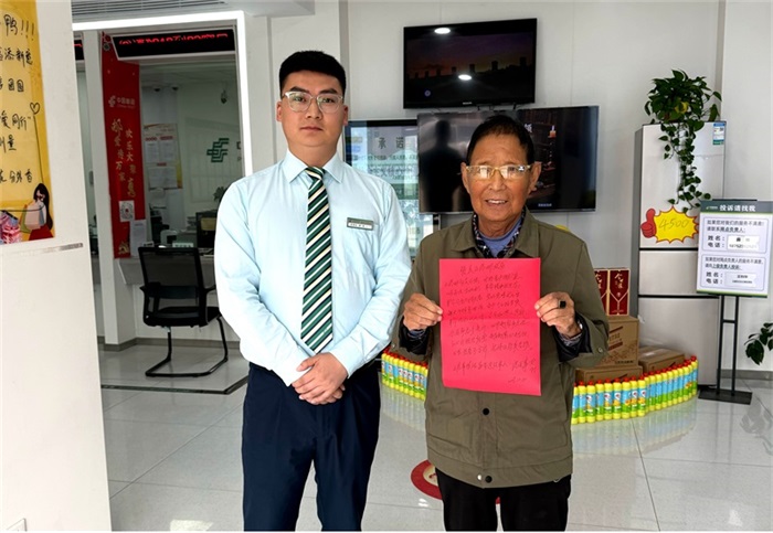 记性不好的张大爷总忘记取号流程,五港支局员工便为他制作了“专属指引卡”,清晰标注每一步操作,并附上支局联系电话;行动不便的李奶奶前来办理业务,员工主动协调,为她优先办理,减少等待时间……这些看似微小的举动,已成为老人们心中最温暖的依靠。