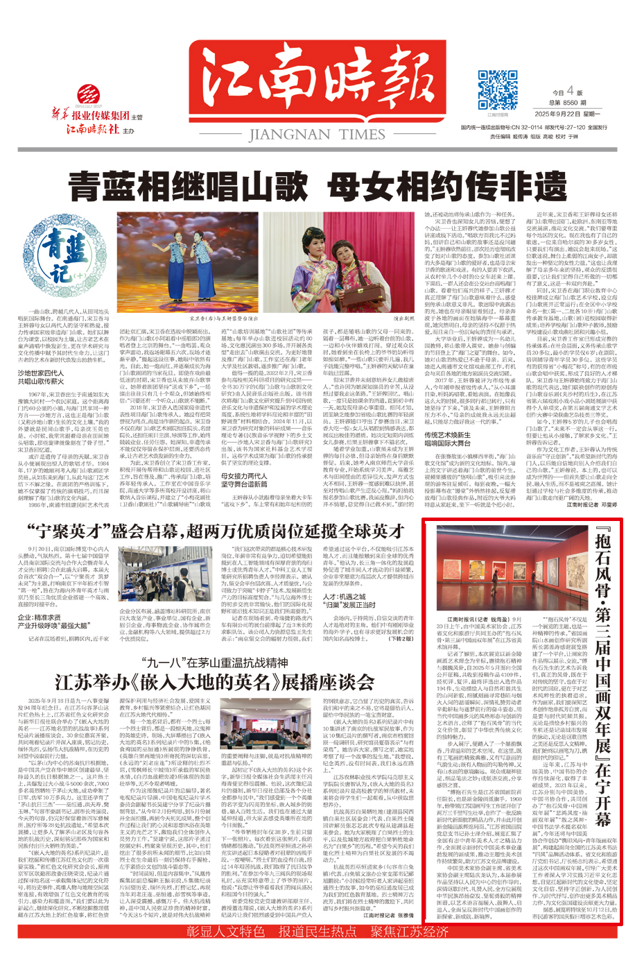 江南时报讯(记者 钱海盈) 9月20日上午,由中国美术家协会、江苏省文化和旅游厅共同主办的“抱石风骨·第三届中国画双年展”在江苏省美术馆开幕。