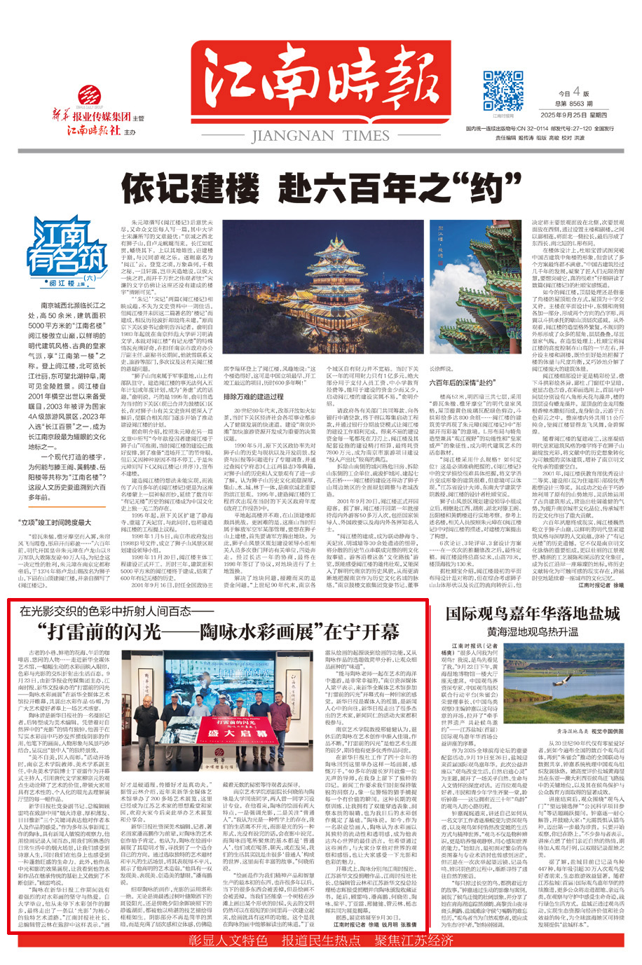 在新华日报社工作了四十余年的陶咏回到这里举办这样一场画展,感慨万千。“40多年的漫长岁月就像一位无声的导师,在我身上留下了独特的印记。新闻工作要求我们时刻保持敏锐的洞察力,像一位警惕的猎手捕捉每一个有价值的瞬间。这种长期的观察训练,让我拥有了双能穿透表象、洞察本质的眼睛,也为我日后的水彩创作奠定了基础。”陶咏说。如今,作为一名职业绘画人,陶咏认为水彩画以其独特的流动性和透明感,成为他表达内心世界的最佳语言。他希望通过这些画作,与大家分享他对世界的观察和感悟,也让大家感受一下光影和色彩的魅力。