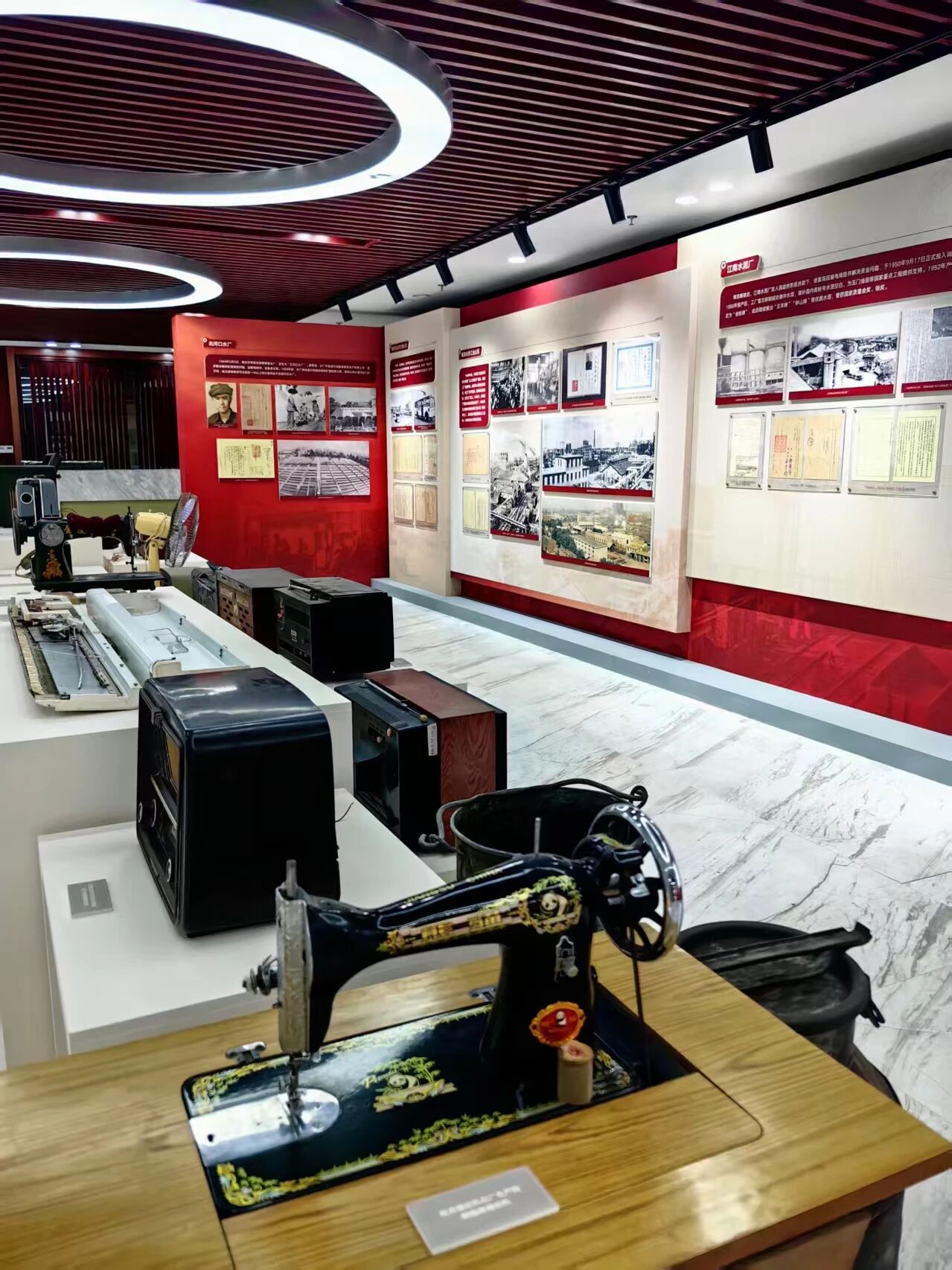 此外,展览现场还设置了特色展区,集中展示了南京家喻户晓的地产名牌产品,如熊猫牌缝纫机、熊猫牌电视机、长江牌电影放映机、蝙蝠牌电扇等。这些承载着几代人集体记忆的“南京制造”,不仅唤起了观众深厚的情感共鸣,也直观反映了南京工业曾经创造的辉煌与品牌影响力。