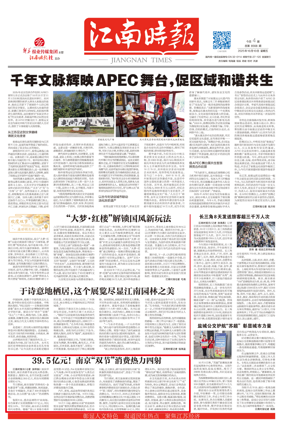 节日期间,南京围绕“四季有约·金秋潮荟季”主题,将潮流购物、休闲旅游、美食打卡相融合,开展了300多场促消费活动,全力点燃“金九银十”的消费热情。
