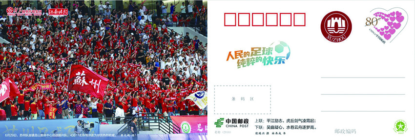 “苏超”明信片(苏州)效果图(反面) 林再成 书 钦瑞兴 撰