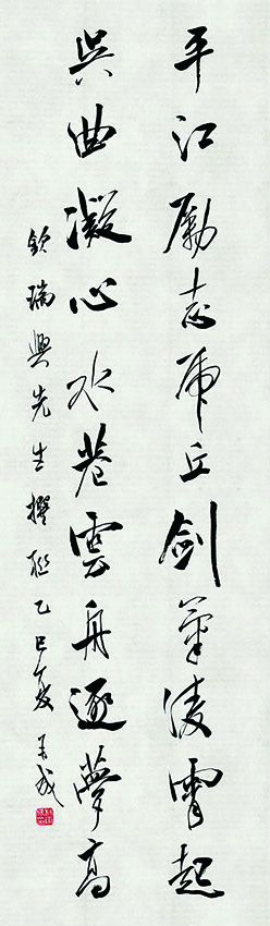 在林再成看来,这副楹联将平江、虎丘等具有深厚历史底蕴的文化地标与“苏超”联赛结合在一起,激励着苏州队在绿茵场上奋勇前行,为苏州古城增光添彩。用笔墨去呈现这副楹联时,林再成通过正侧锋转换、提按顿挫形成凌厉笔势,“书风与创作文本及创作意图关系密切,相互契合才能增强艺术表现力,达到形神兼备的境界”。