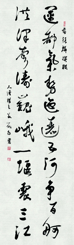 纵观全书,作品取法米芾,通过提按、轻重、疾缓等技巧和疏密、虚实、欹正关系的处理,实现传统运河文化与现代赛事精神的交融,给人一种浑然天成、一气呵成的感觉,既贴合大众审美,又尽显楹联典雅。