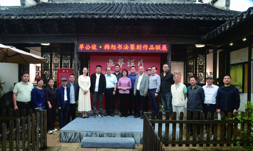 10月18日下午,“游艺骈行——单公俊·韩旭书法篆刻作品联展”在无锡惠山古镇惠泉山书院开幕。