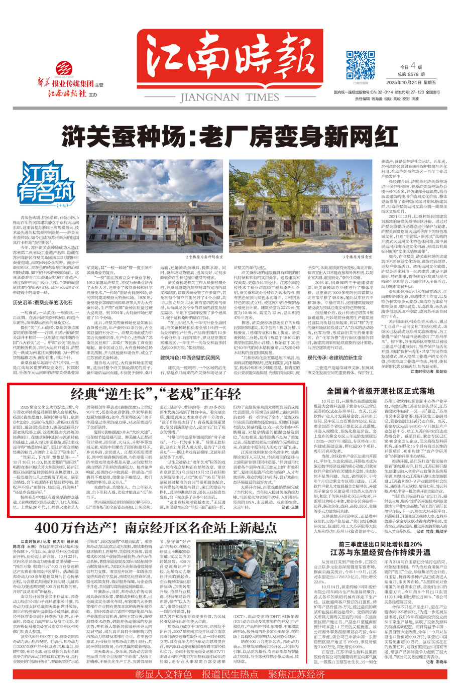 2025紫金文化艺术节好戏正酣,今年首次将经典复排剧目纳入会演板块,扬剧《袁樵摆渡》、锡剧《攀弓带》、京剧《诗文会》、京剧《乌龙院》、黄梅戏《真假新郎》、通剧《陈英卖水》、锡剧《孟丽君》7部老戏轮番上演,这些历经时光淬炼的经典剧目,在继承剧种基因与流派特色的基础上,融入当代审美意趣,既让老戏迷寻得“熟悉的味道”,更让新观众领略经典的魅力,在舞台上实现了“逆生长”。