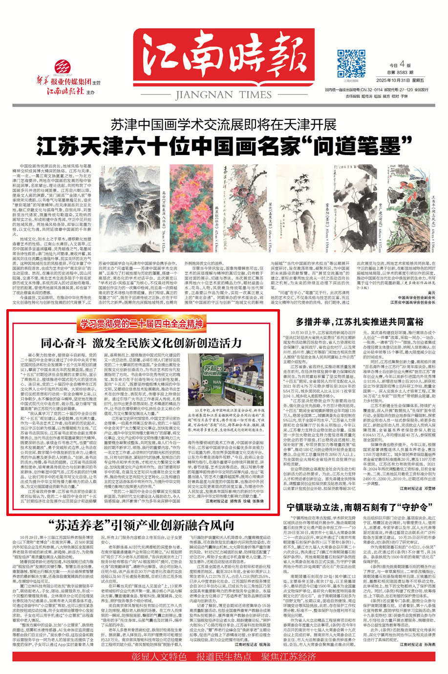 凝心聚力担使命,接续奋斗启新程。党的二十届四中全会审议通过了《中共中央关于制定国民经济和社会发展第十五个五年规划的建议》,擘画了中国未来五年的发展蓝图,提出了“十五五”时期经济社会发展的主要目标,宣示了乘势而上、接续推进中国式现代化的坚定决心。连日来,党的二十届四中全会精神在江苏文化界人士中引发热烈反响。大家纷纷表示,要切实把思想和行动统一到全会精神上来,以只争朝夕、永不懈怠的奋斗精神,坚定地在推进中国式现代化中走在前、做示范,奋力谱写“强富美高”新江苏现代化建设新篇章。