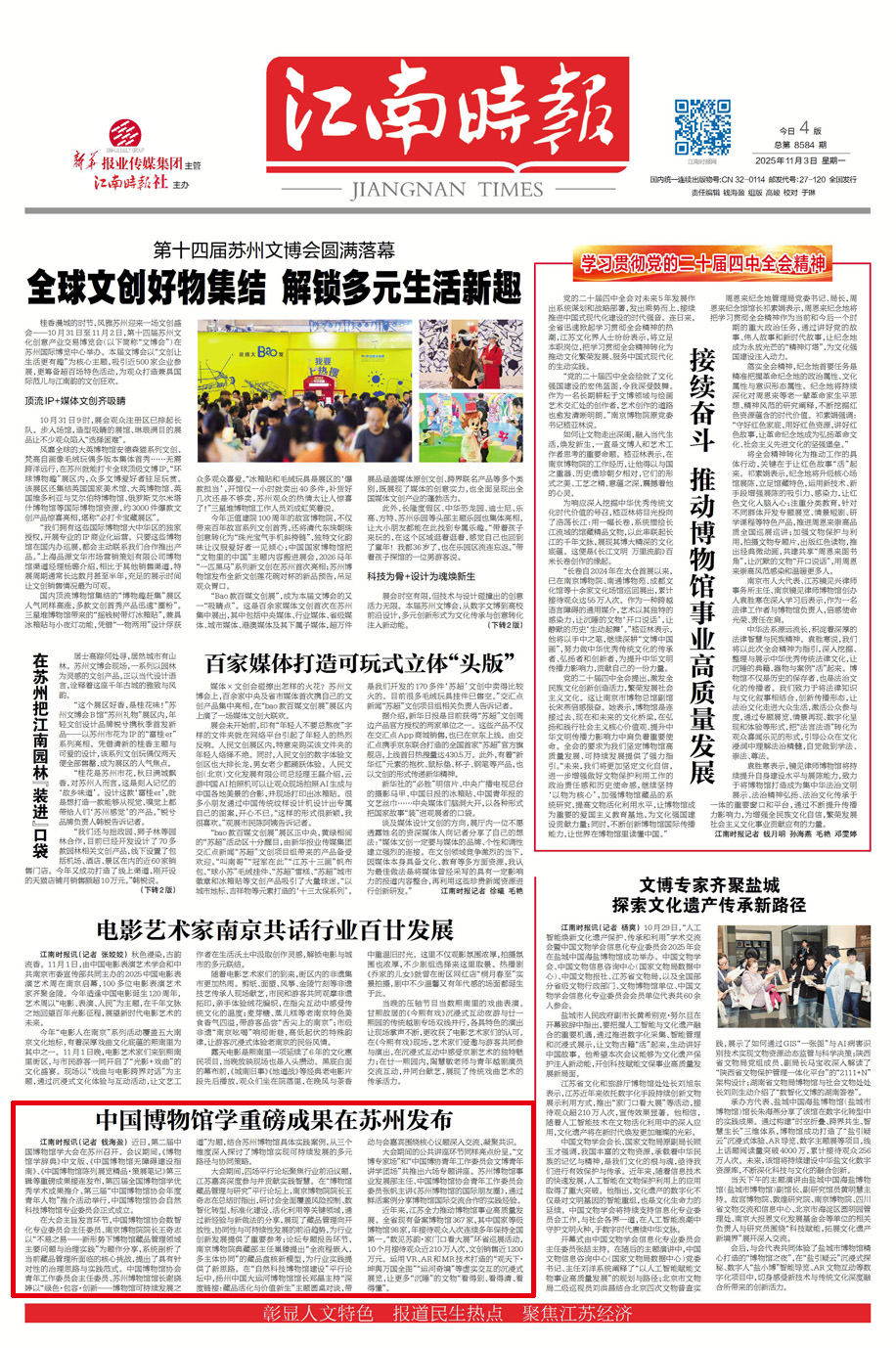 近年来,江苏全力推动博物馆事业高质量发展。全省现有备案博物馆367家,其中国家等级博物馆98家,年接待观众人次连续多年保持全国第一。“数见苏韵·家门口看大展”环省巡展活动,10个月接待观众近210万人次,文创销售近1200万元。运用VR、AR和MR技术打造的“观天下·坤舆万国全图”“运河奇境”等虚实交互的沉浸式展览,让更多“沉睡”的文物“看得到、看得清、看得懂”。