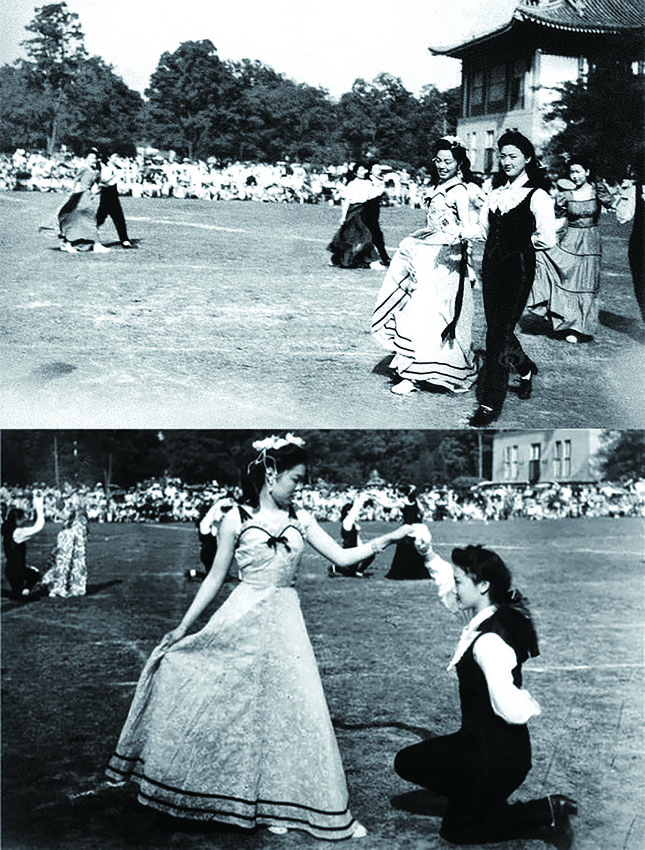 大草坪上,她们或是进行体态训练,或是翩翩起舞;安静的图书馆里,唯有书页被她们轻轻翻动;音乐厅内,她们不仅是表演者,也是观赏者;体育馆里,记录着她们在旱冰、体操等各类新兴运动项目中的飒爽英姿……她们的校园生活丰富精彩,每年5月1日还会举行五朔节花柱舞舞会。舞会上,女孩们穿着代表各国风情的华丽服饰,在操场上围着花柱跳舞,并要选出“五月皇后”。建筑所带来的中西合璧的魅力亦展现在校园文化之中。